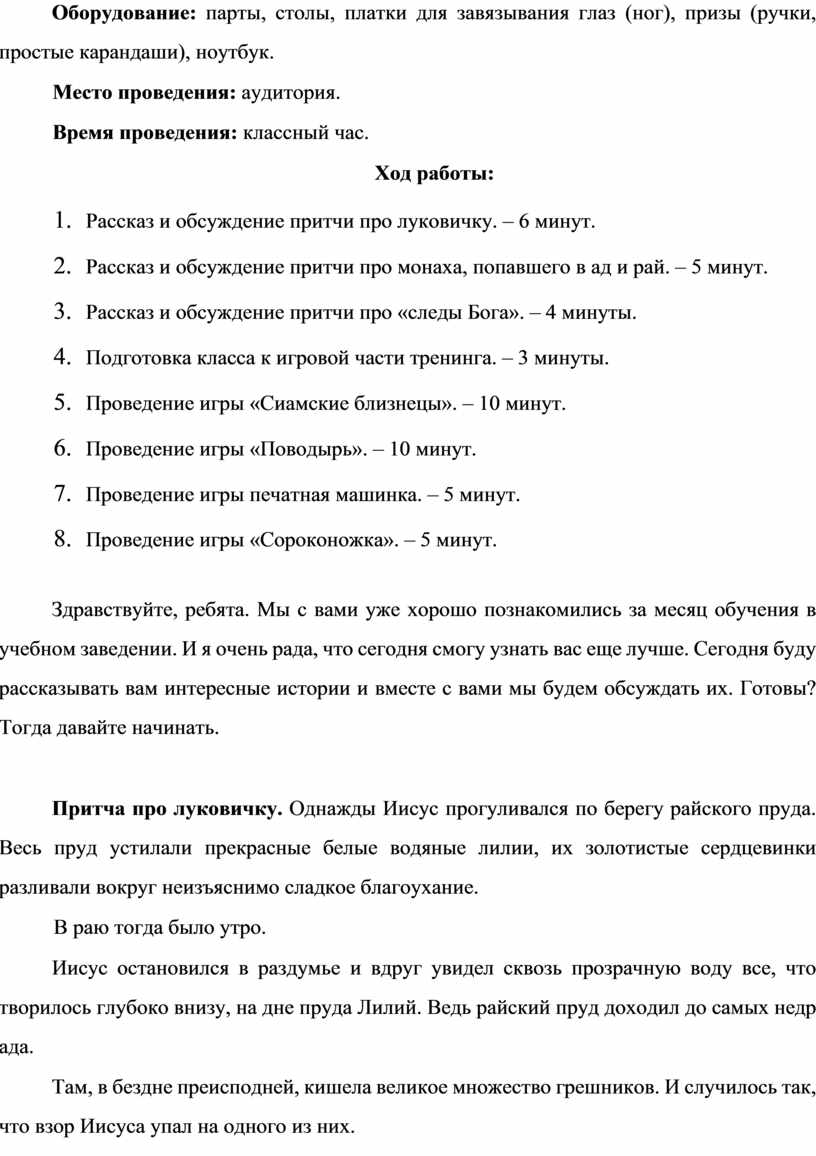 1. Рассказ и обсуждение притчи про луковичку. – 6 минут.