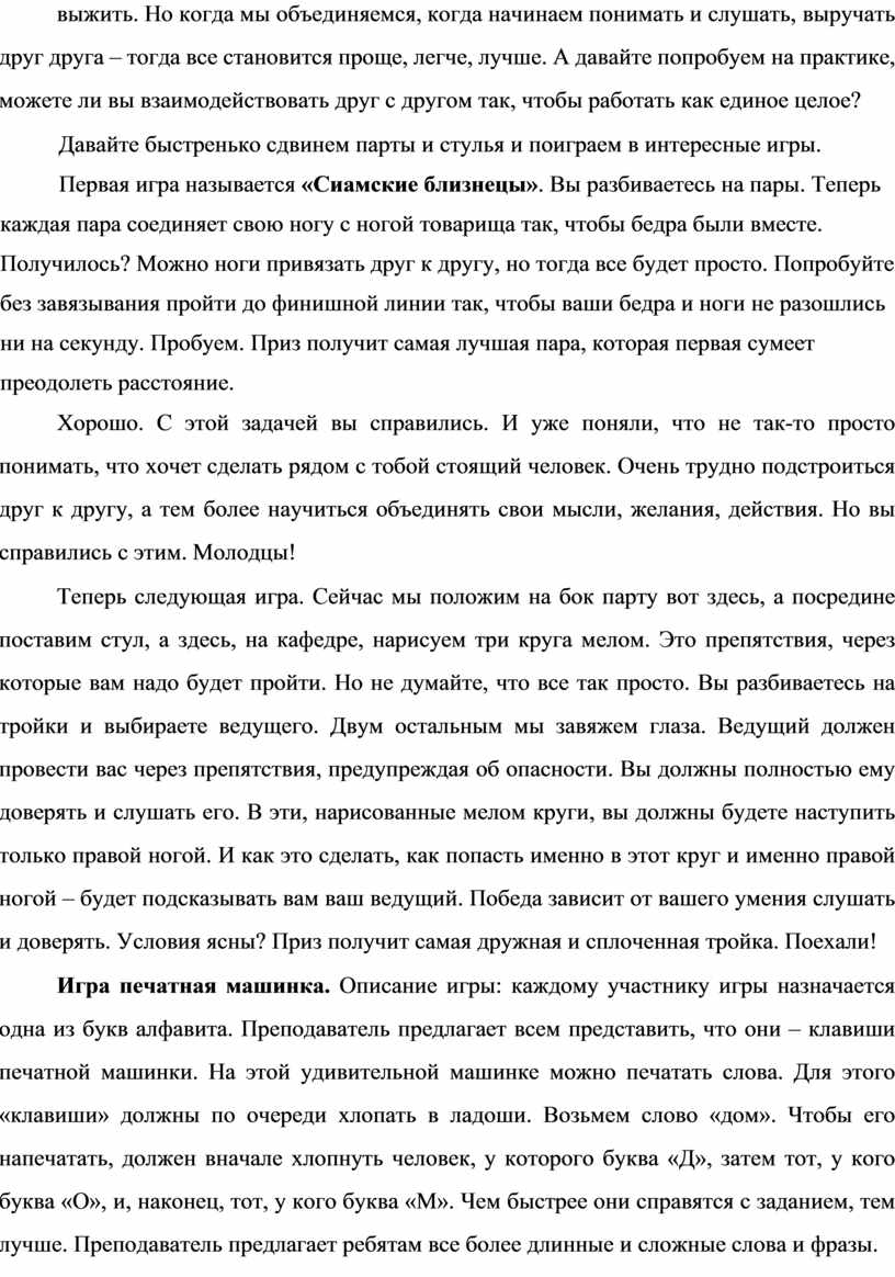 5. Проведение игры «Сиамские близнецы». – 10 минут.