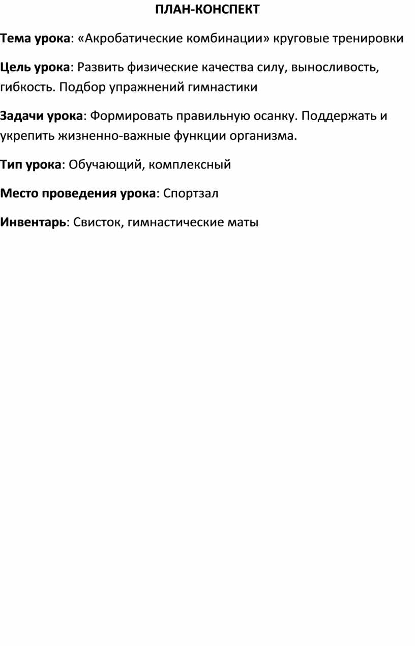 Тема урока: «Акробатические комбинации» круговые тренировки