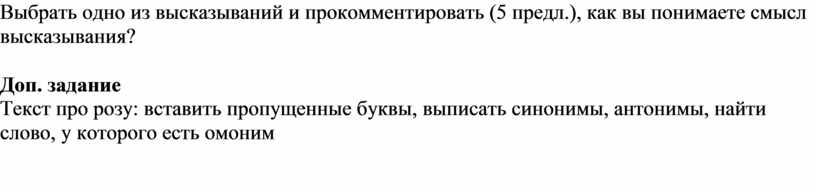 Выбрать одно из высказываний и прокомментировать (5 предл.), как вы понимаете смысл высказывания?