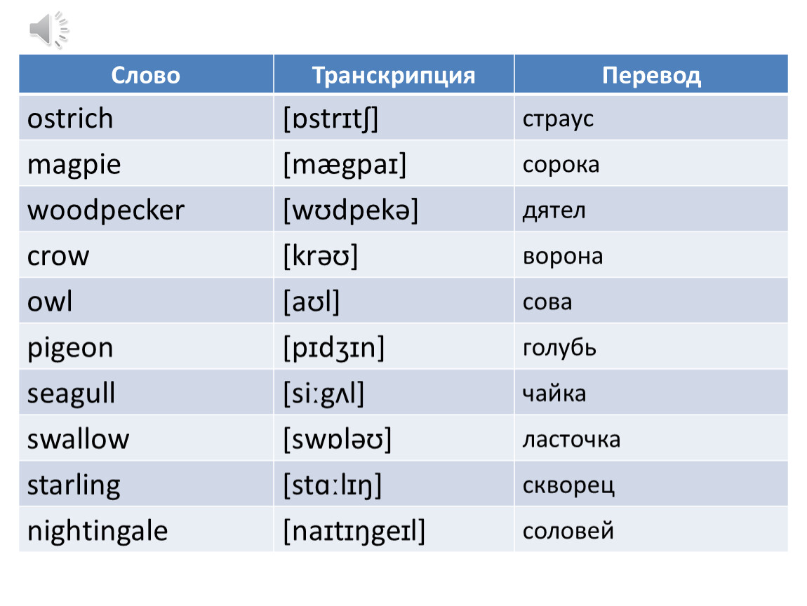 nightingale | [naɪtɪŋgeɪl] | соловей |