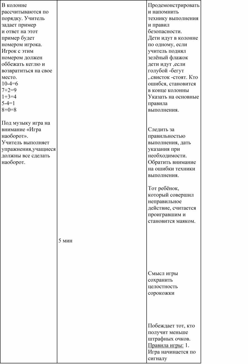 Инвентарь и оборудование: кегли, карточки с примерами, карточка с пословицами, памятки