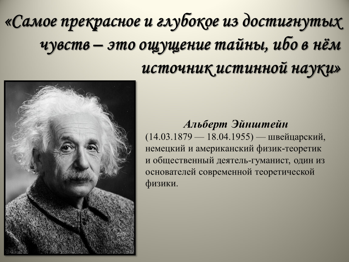 «Самое прекрасное и глубокое из достигнутых чувств – это ощущение тайны, ибо в нём источник истинной науки»