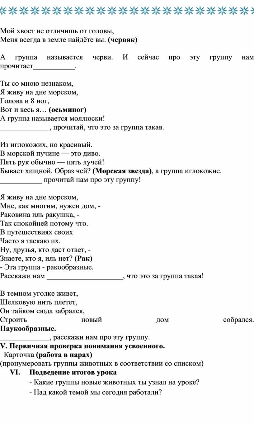 Цель: познакомить с классификацией животных и их групповыми признаками.
