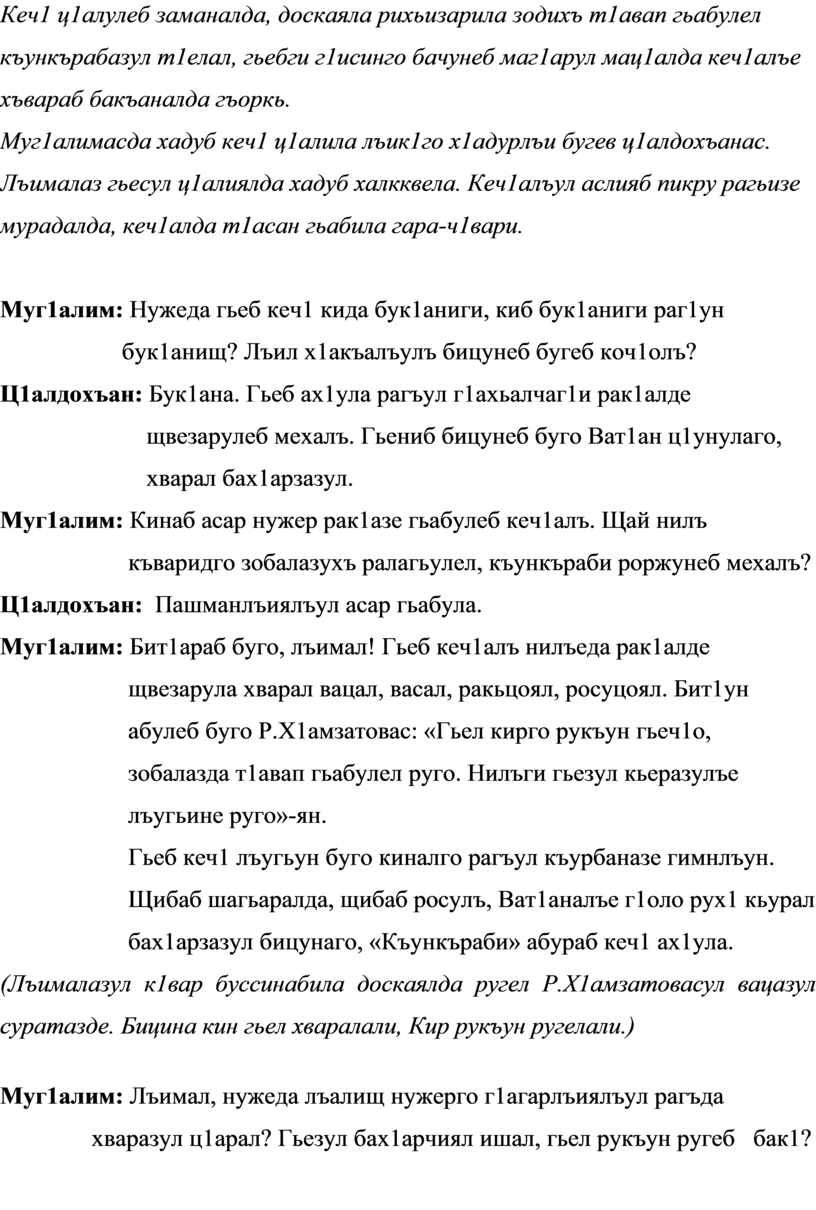 Муг1алим: Лъимал! Р.Х1амзатовас хъвана коч1ол раг1аби. Лъалищ нужеда