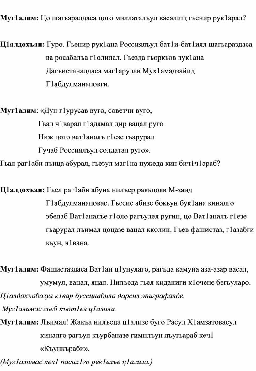 (Муг1алимас кеч1 пасих1го рек1ехъе ц1алила.)