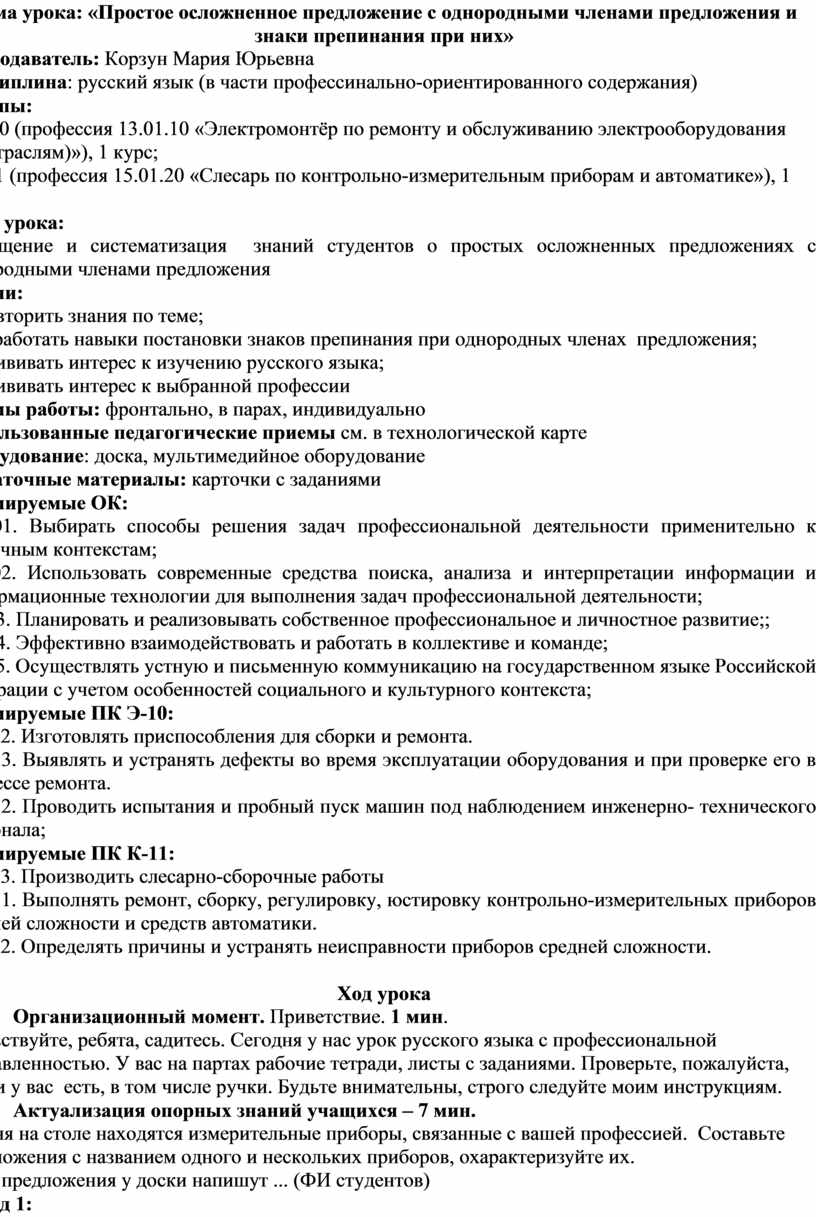 Здравствуйте, ребята, садитесь. Сегодня у нас урок русского языка с профессиональной направленностью. У вас на партах рабочие тетради, листы с заданиями. Проверьте, пожалуйста, все ли у вас есть, в том числе ручки. Будьте внимательны, строго следуйте моим инструкциям.