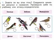 -Сейчас в рабочей тетради выполните задание (закрасьте красным карандашом зимующих птиц, а синим - перелетных).