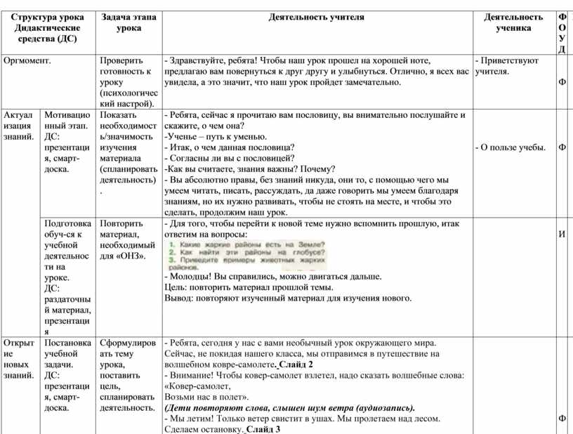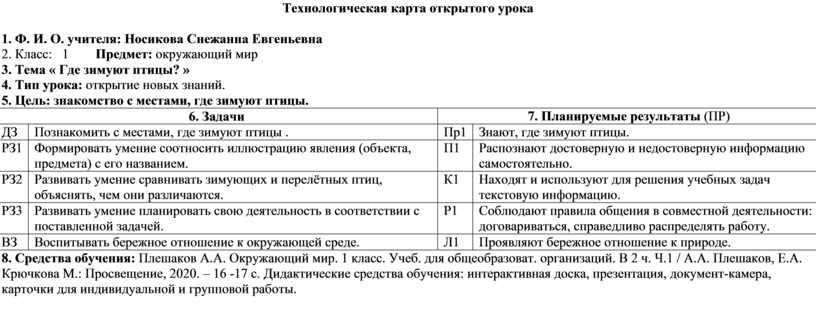 Технологическая карта открытого урока