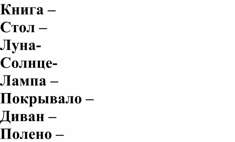 (парта, дневник, стул, окно, дверь, стол, цветок, книга, зеркало, пальто,поле, кровать ,волна, школа. )