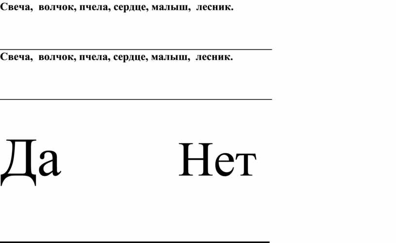 (свеча, волчок, пчела, сердце, малыш, лесник)