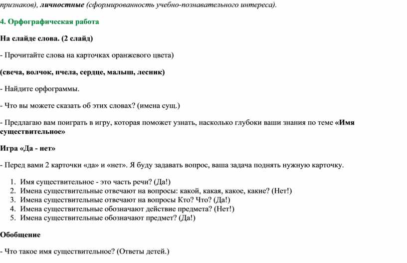 4. Имена существительные обозначают действие предмета? (Нет!)