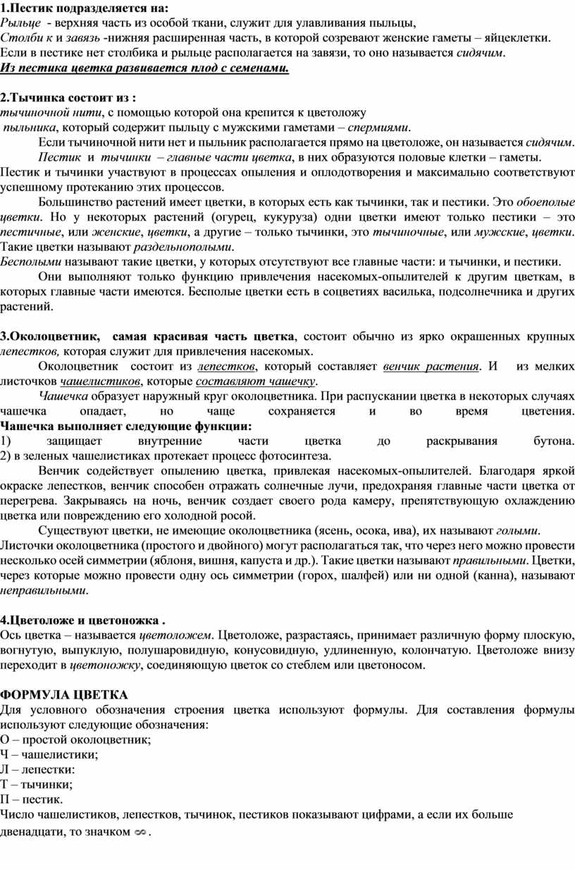 Для условного обозначения строения цветка используют формулы. Для составления формулы используют следующие обозначения: