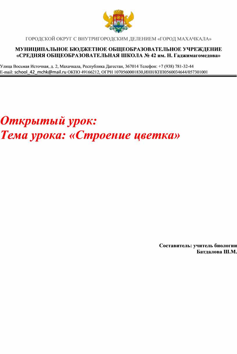 E-mail: school_42_mchk@mail.ru ОКПО 49166212, ОГРН 1070560001830,ИНН/КПП0560034644/057301001