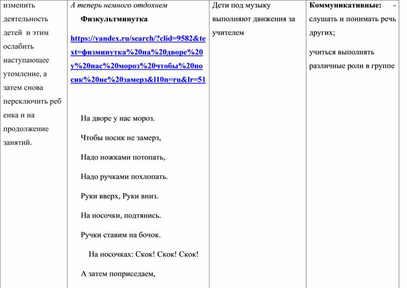 А теперь немного отдохнем Физкультминутка https://yandex.ru/search/?clid=9582&text=физминутка%20на%20дворе%20у%20нас%20мороз%20чтобы%20носик%20не%20замерз&l10n=ru&lr=51