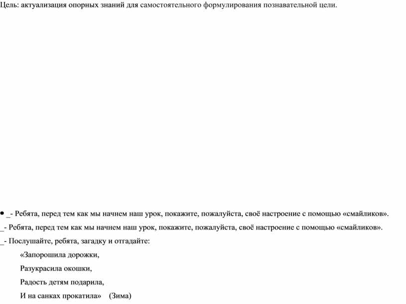2.Актуализация знаний. Постановка целей урока Цель: актуализация опорных знаний для самостоятельного формулирования познавательной цели.