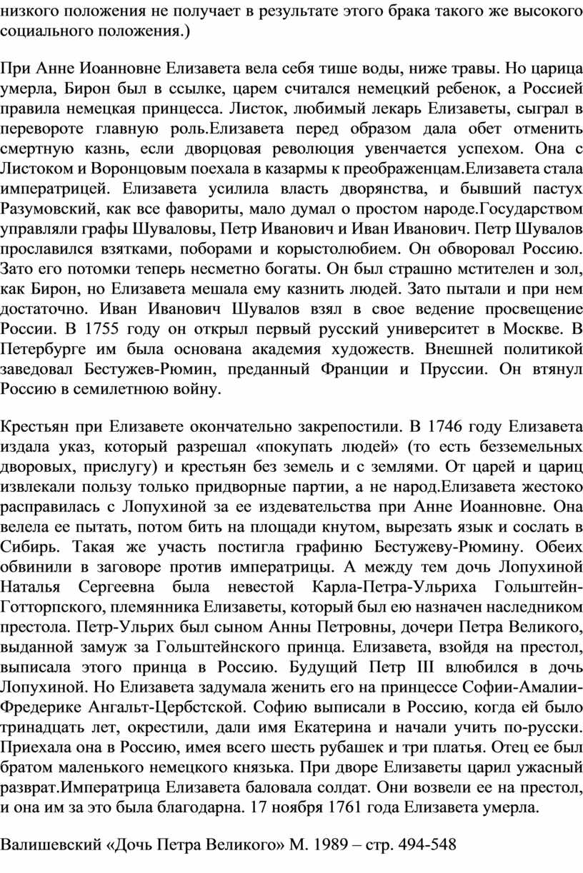 Валишевский «Дочь Петра Великого» М. 1989 – стр. 494-548