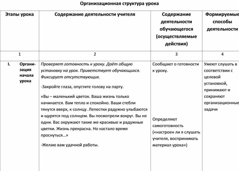 Проверяет готовность к уроку. Даёт общую установку на урок. Приветствует обучающихся. Фиксирует отсутствующих. -Закройте глаза, опустите голову на парту. «Вы – маленький цветок. Ваша жизнь только начинается. Вам тепло и спокойно. Ваши стебли тянутся вверх, к солнцу. Лепестки радужно улыбаются и щурятся под солнцем. Вы посмотрели вокруг. Вы не одни. Вас окружают такие же красивые и радужные цветки. Жизнь прекрасна. Но настало время проснуться…» -Желаю вам удачной работы. |
