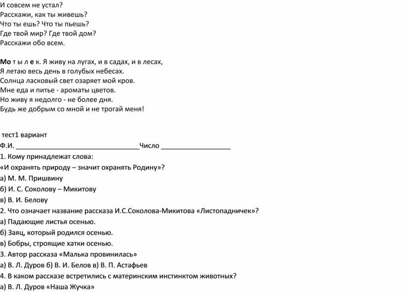 2. Что означает название рассказа И.С.Соколова-Микитова «Листопадничек»?