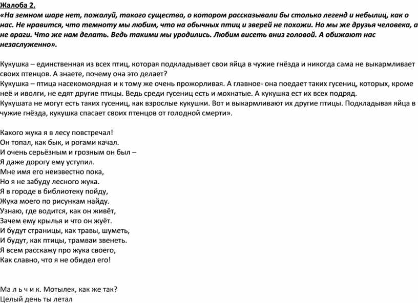 «На земном шаре нет, пожалуй, такого существа, о котором рассказывали бы столько легенд и небылиц, как о нас. Не нравится, что темноту мы любим, что на обычных птиц и зверей не похожи. Но мы же друзья человека, а не враги. Что же нам делать. Ведь такими мы уродились. Любим висеть вниз головой. А обижают нас незаслуженно».