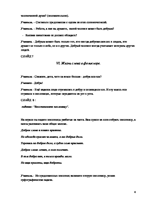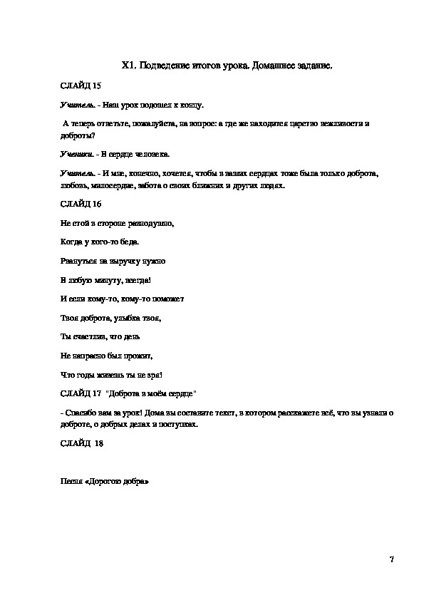 Учитель. И мне, конечно, хочется, чтобы в ваших сердцах тоже была только доброта,