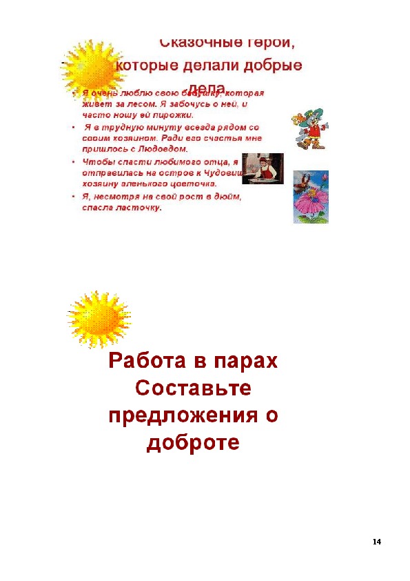 Учитель. – Ребята, а как вы думаете, какой человек может быть добрым?