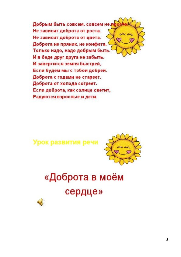 Открытый урок "Доброта в моём сердце" 2 класс.Открытый урок развития речи во 2-м классе по теме:«Доброта в моём сердце»
