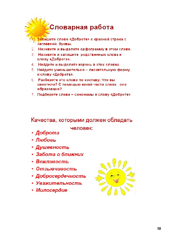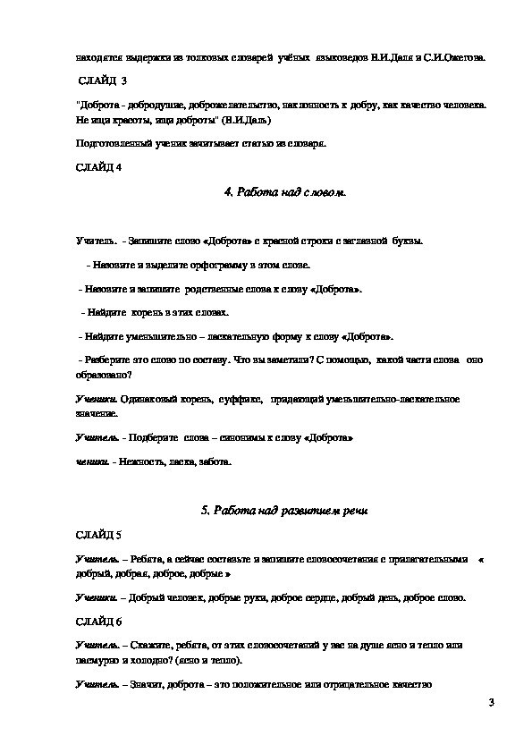 Учитель. Запишите слово «Доброта» с красной строки с заглавной буквы.
