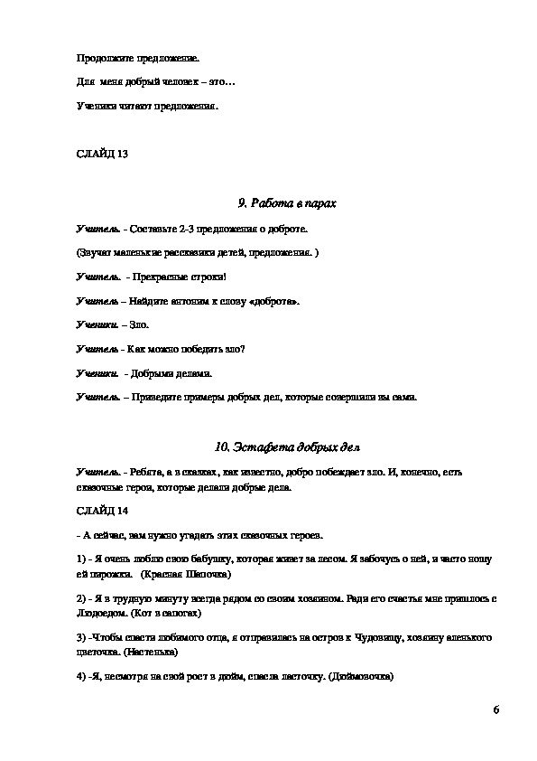 Учитель. – Приведите примеры добрых дел, которые совершили вы сами.