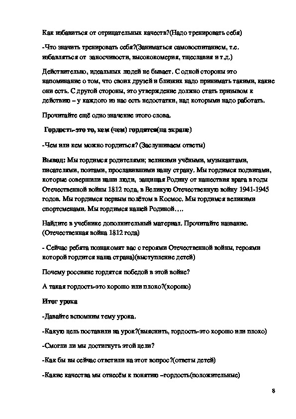 -находить ответы на вопросы, используя учебник, свой жизненный опыт и информацию, полученную на уроке.Открытый урок "Гордость и гордыня" 4 класс