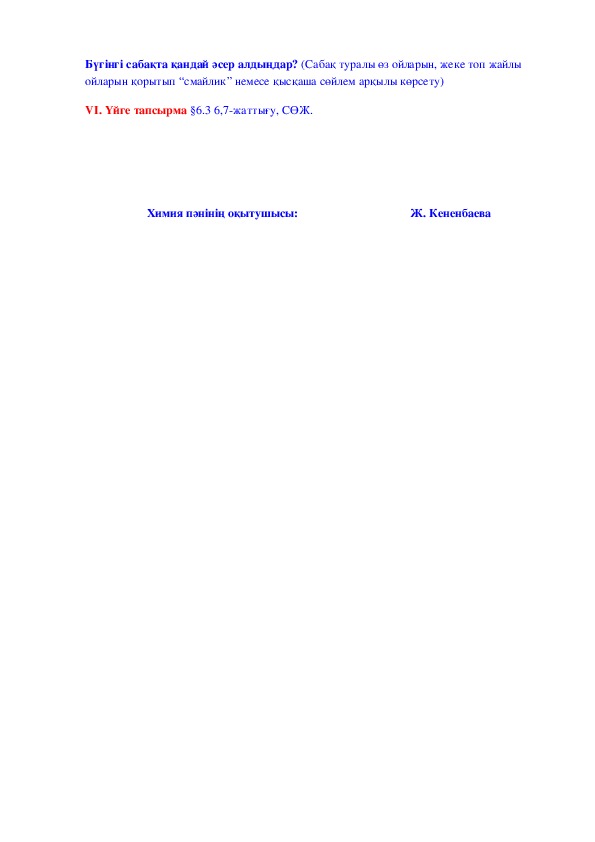 VІ. Үйге тапсырма §6.3 6,7жаттығу, СӨЖ.