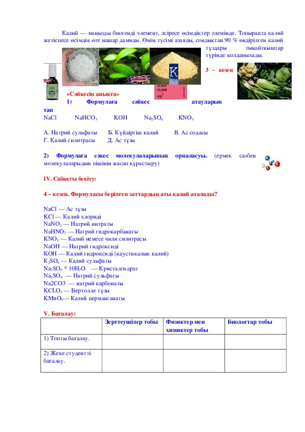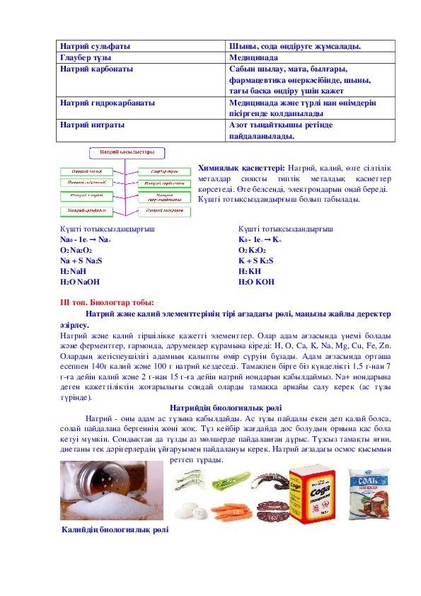 ІІІ. Негізгі бөлім: «Натрий және калий»