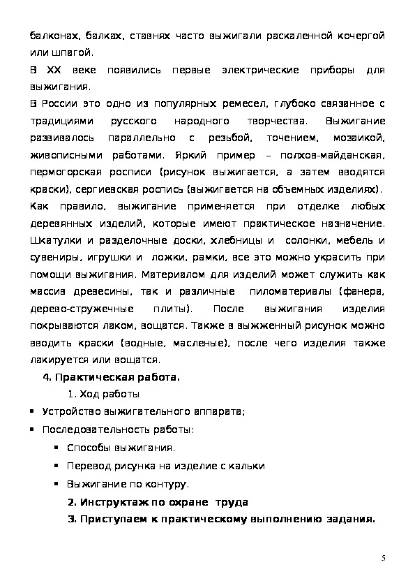 1. Научить учащихся пользоваться выжигательным аппаратом