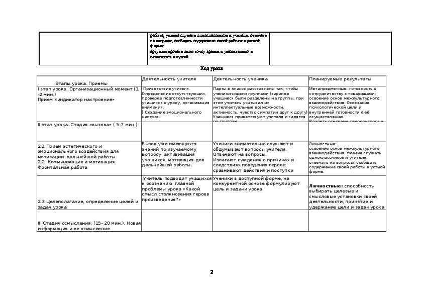 Этапы урока. Приемы