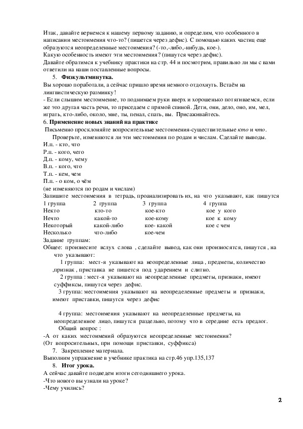 1) познакомиться с вопросительными и неопределенными местоимениями.
