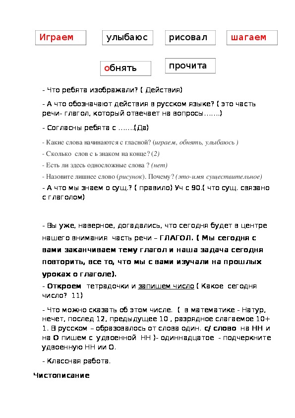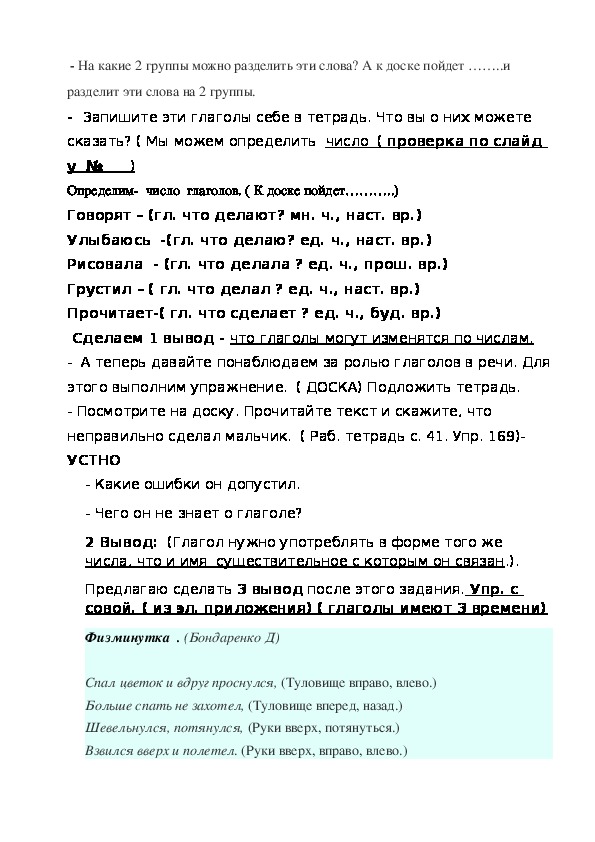 - А теперь давайте понаблюдаем за ролью глаголов в речи. Для