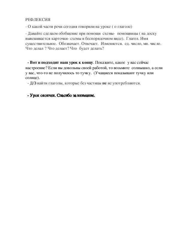 вывешивается карточки схемы в беспорядочном виде). Глагол. Имя
