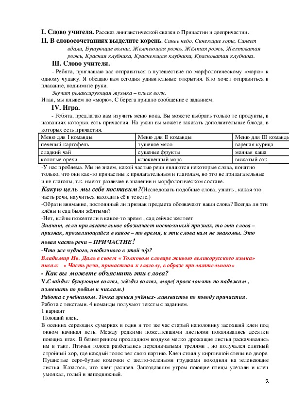 1I. Слово учителя. Рассказ лингвистической сказки о Причастии и деепричастии.