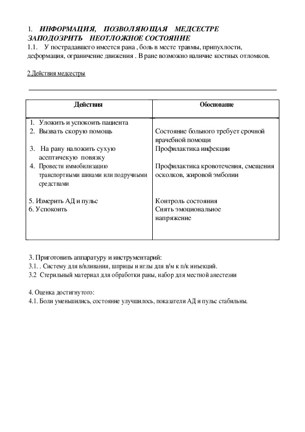 4.1. Состояние пострадавшего улучшилось, боли уменьшились, пульс и АД стабильны