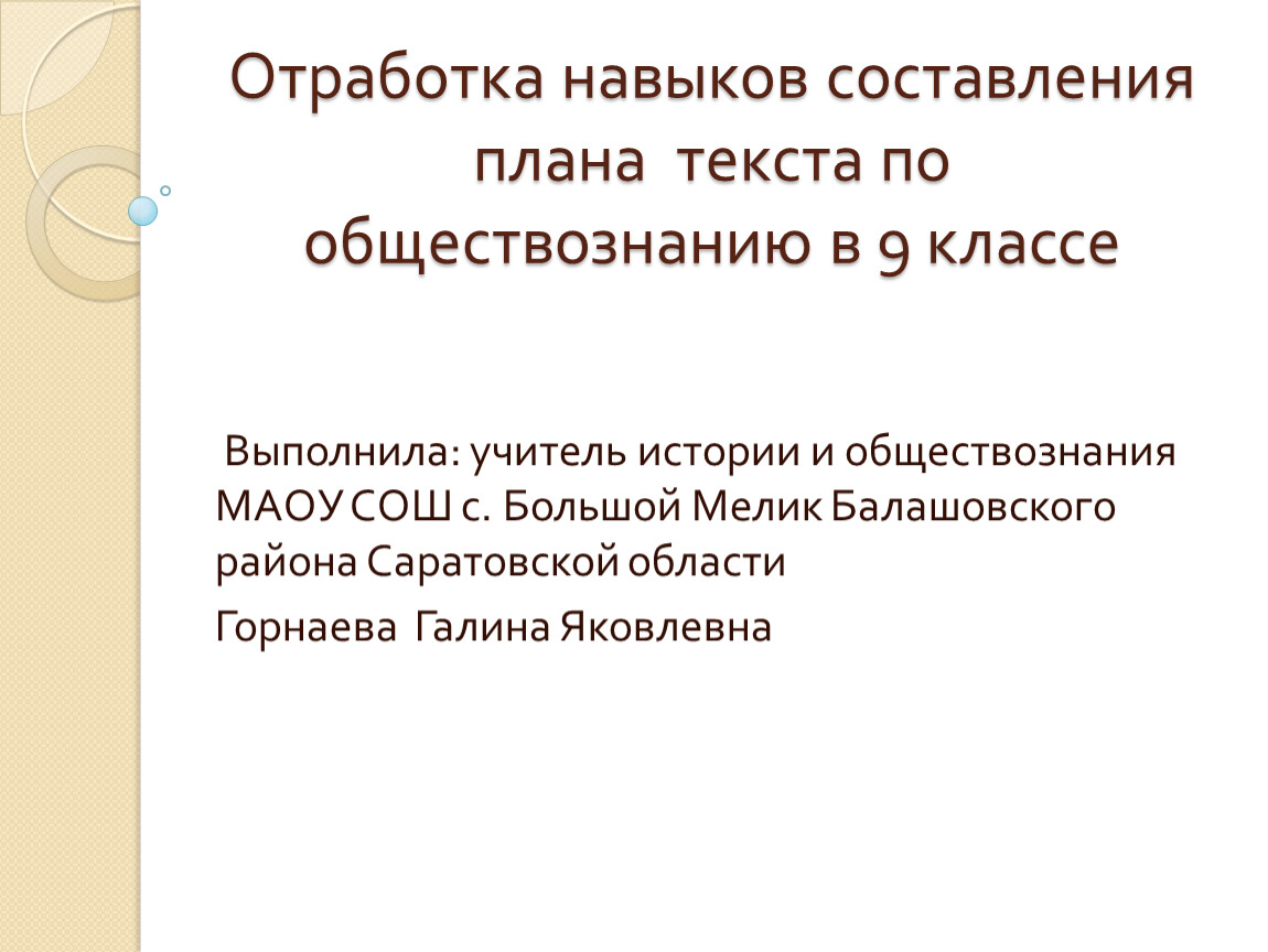 Отработка навыков составления плана текста по обществознанию в 9 классе