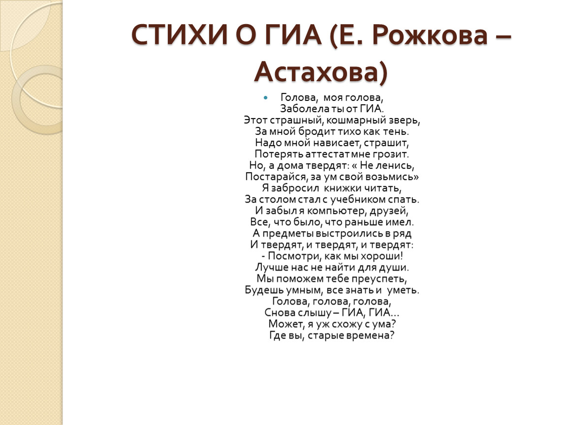 СТИХИ О ГИА (Е. Рожкова – Астахова)