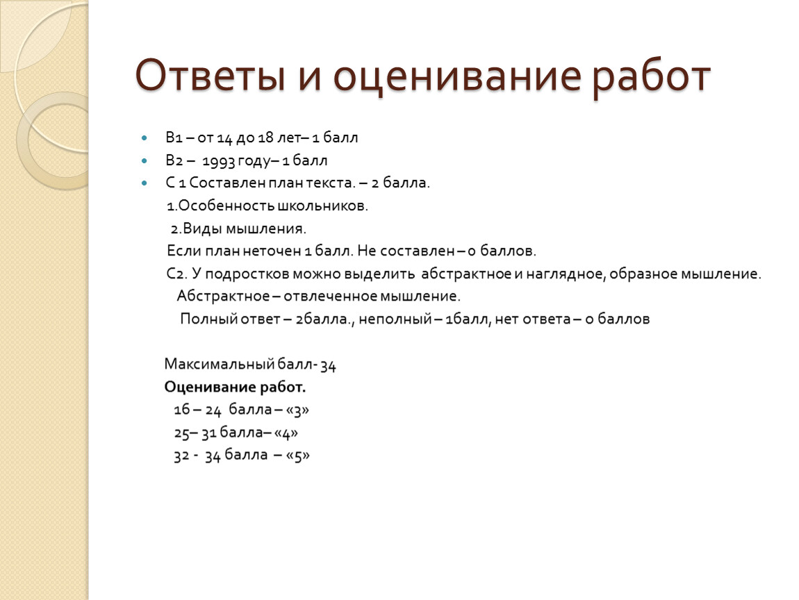Полный ответ – 2балла., неполный – 1балл, нет ответа – о баллов