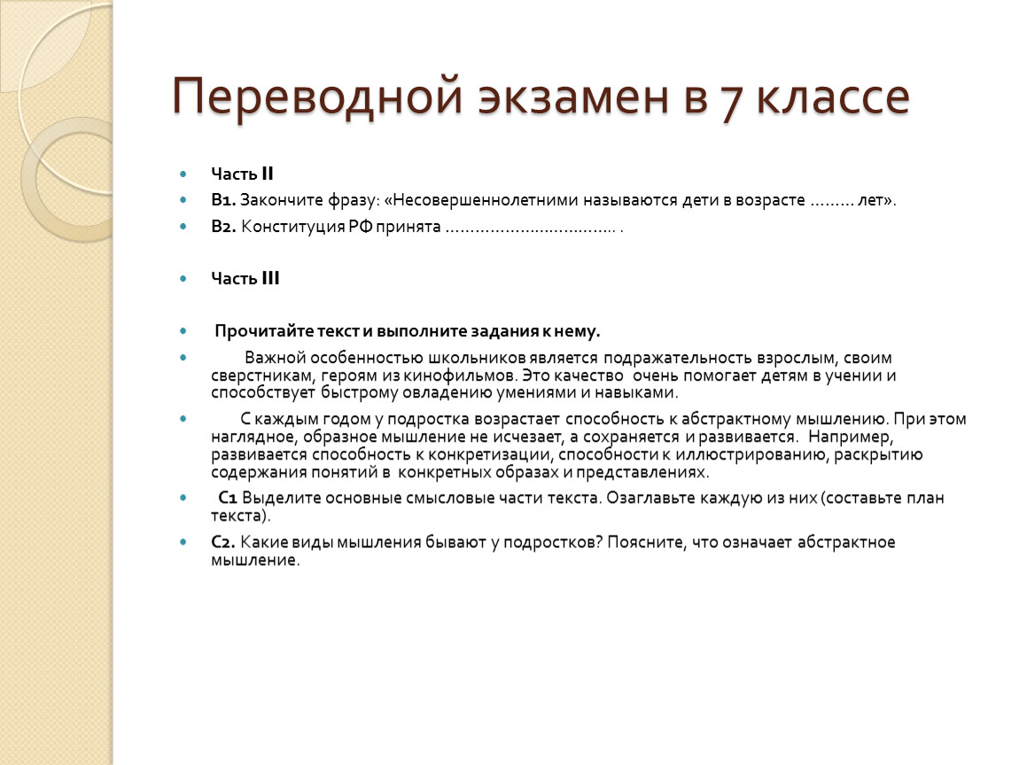 С2. У подростков можно выделить абстрактное и наглядное, образное мышление.