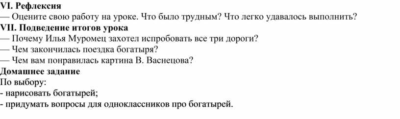 Цель: Знакомство с творчеством художника В. Васнецова и его картиной "Богатыри"