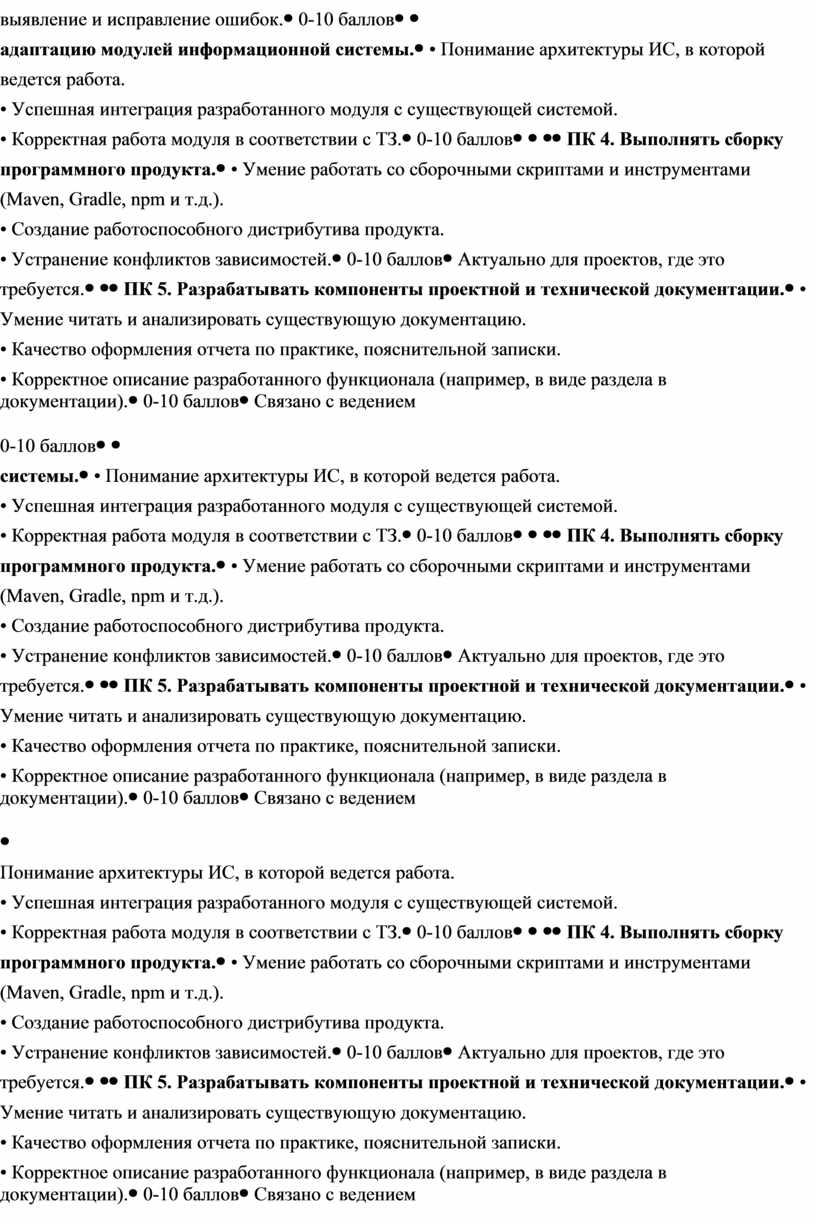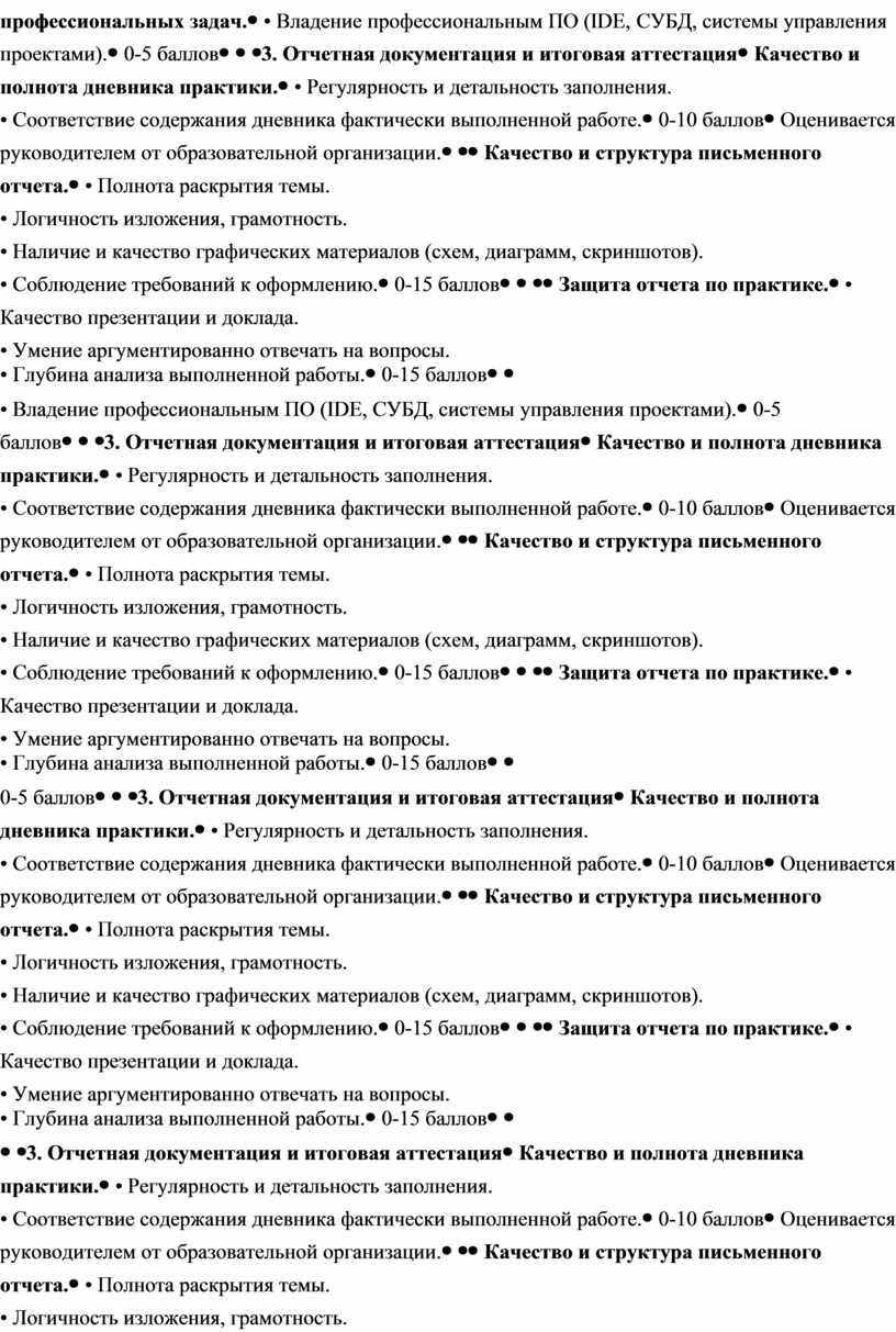 · «Удовлетворительно» (3): 55-70%. Практикант освоил минимально необходимый набор ПК и ОК, допустил существенные ошибки в работе или при оформлении отчета, но в целом выполнил программу практики.