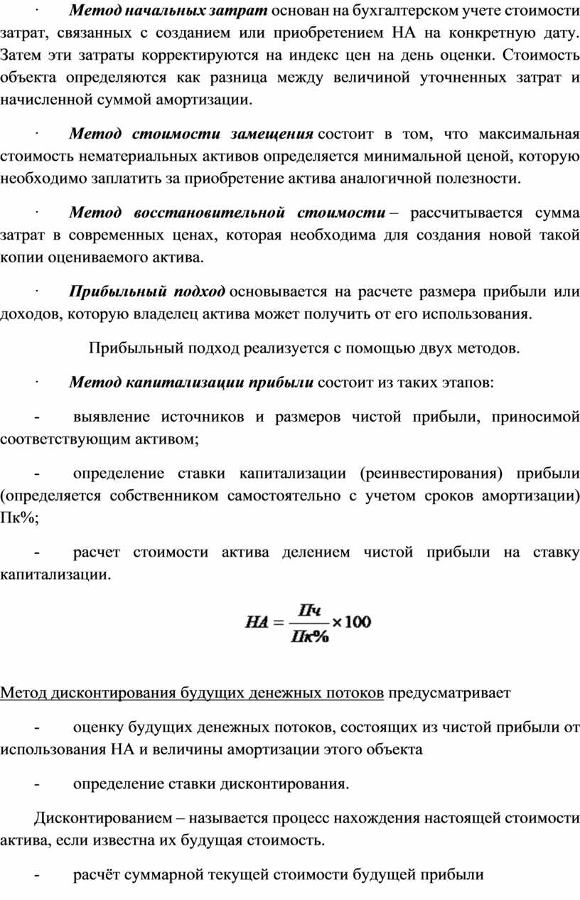 Специфика НА как не овеществленной части имущества предприятия отражают особенности их оценки.