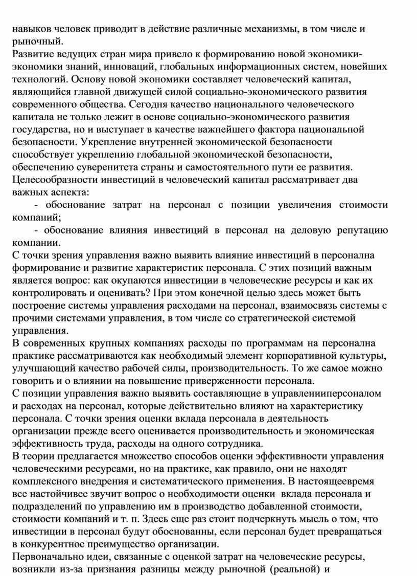 Цель исследования: Проанализировать становление и пути развития инвестирования в человеческий капитал.