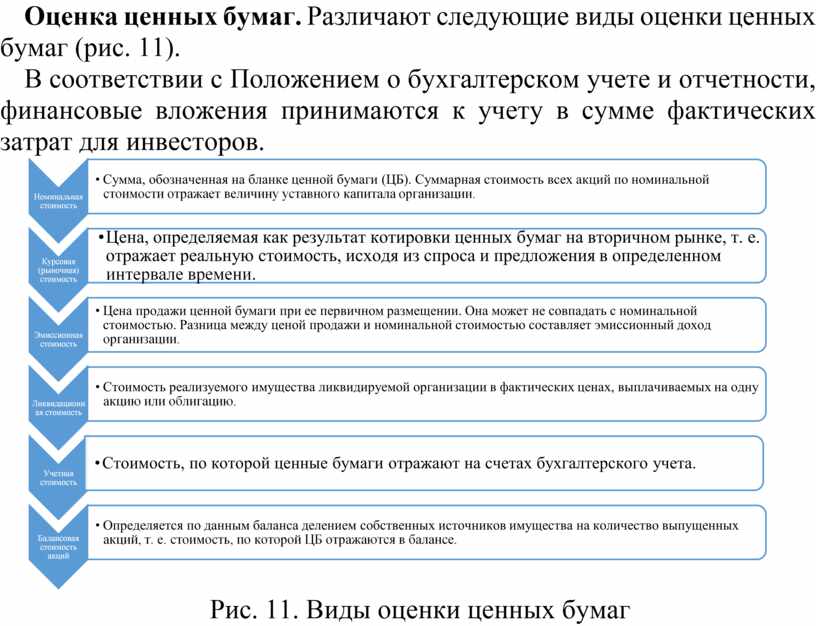 Оценка ценных бумаг. Различают следующие виды оценки ценных бумаг (рис. 11).