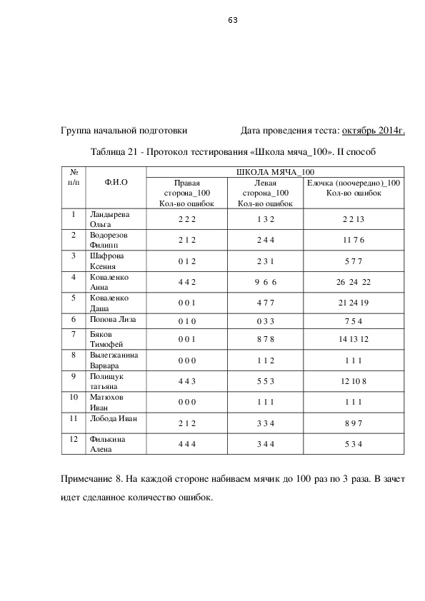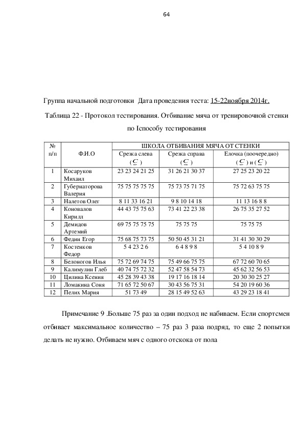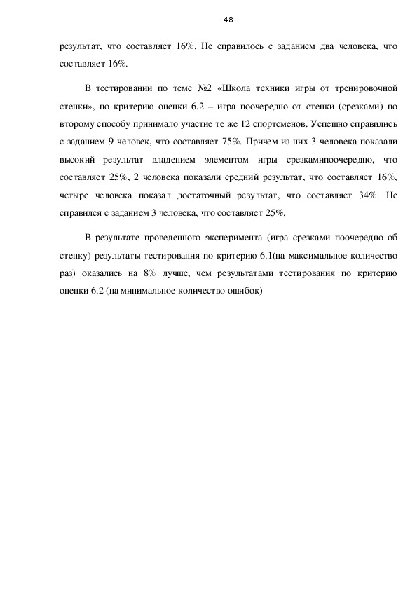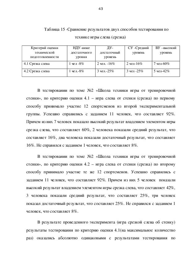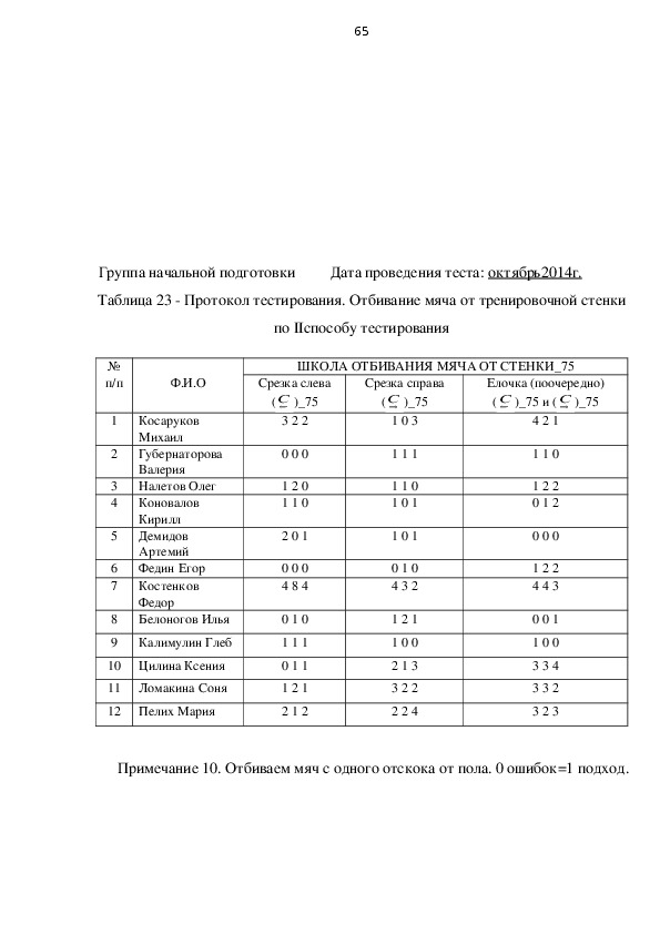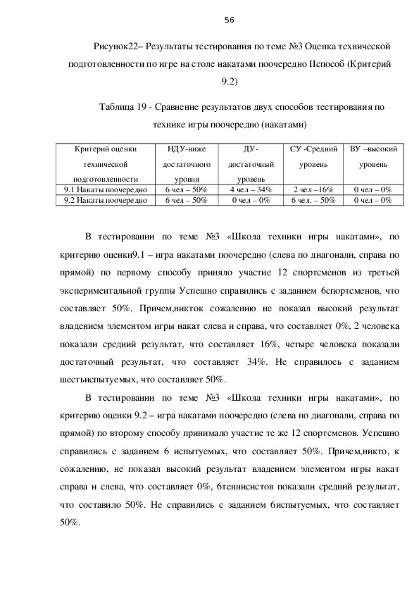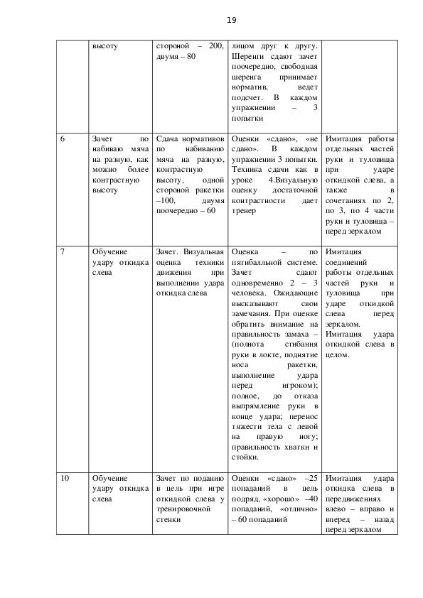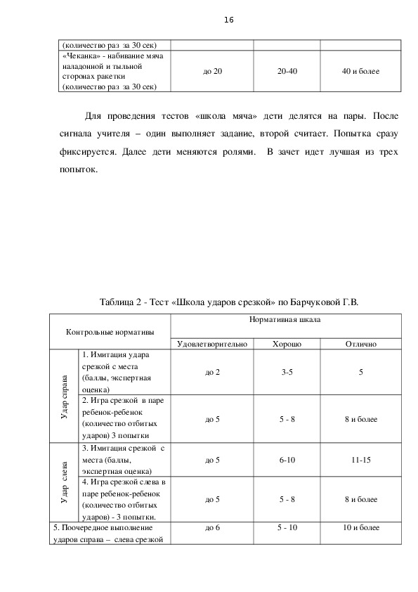 стороне ракетки) результаты тестирования по критерию оценки 2.1(на