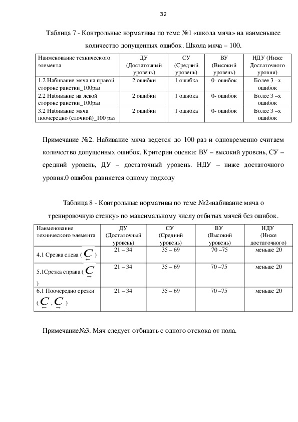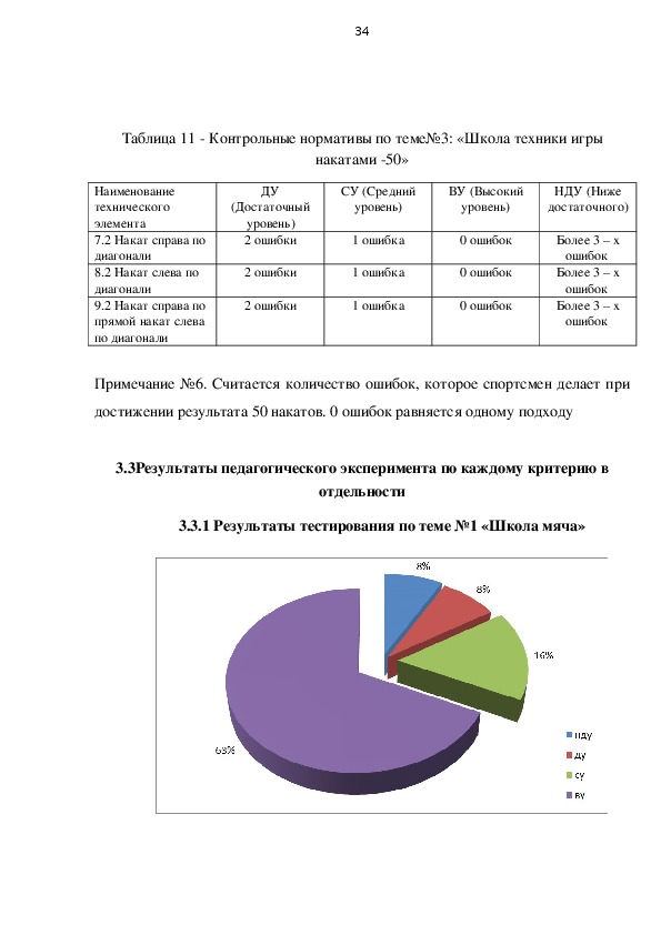 Таблица 11 Контрольные нормативы по теме№3: «Школа техники игры